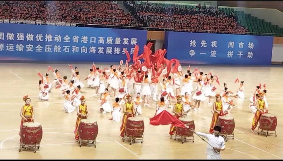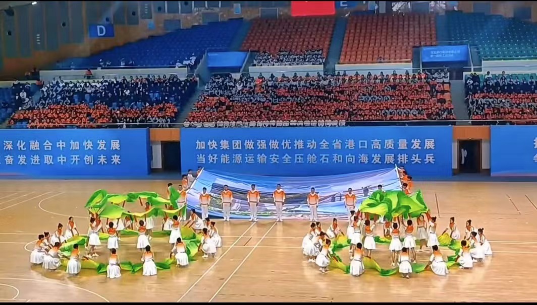 近日,艺术系师生受邀助力河北秦港集团文体活动大型开幕式展演活动。艺术系教师白宇松、张曦经过两周的组织编排,共培训企业员工100人次,同时,艺术系2023级舞蹈表演、歌舞表演学生助力演出,编排设计的大型团体操《天海追梦》热情四射、青春洋溢,展现了企业未来发展新的生机与活力。