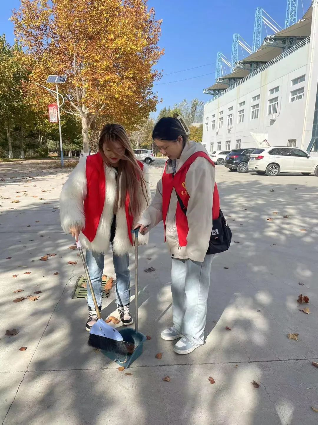 为了美化校园,并且更好地营造校内师生的学习生活和工作环境。我系于2023年10月27日组织了“美丽校园,携手共创”的入党积极分子卫生志愿服务清扫活动。对艺术系系楼外围以及楼门部分的主干路进行清扫。