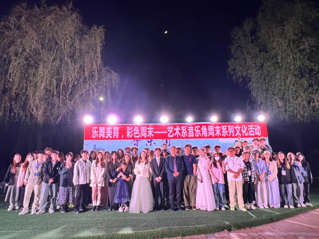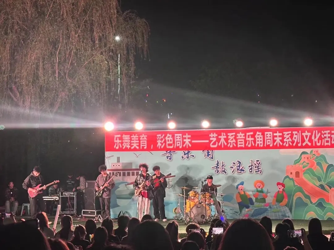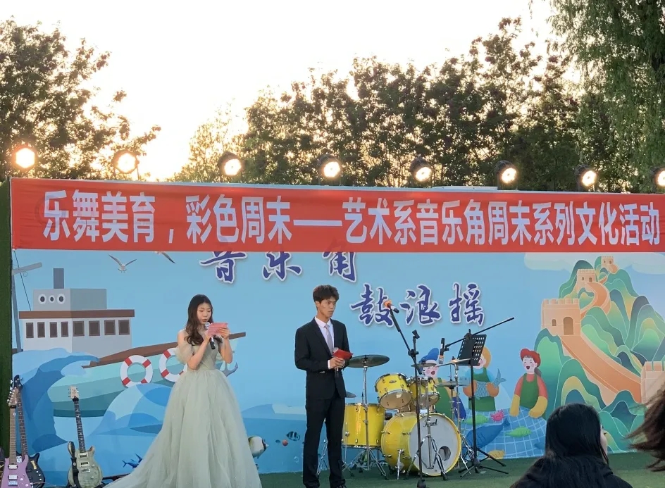 2024年5月12日晚18:30“乐舞美育,彩色周末”--艺术系音乐角周末系列文化活动第二期“音为有你,乐动心灵"音乐会在太阳广场音乐角准时开幕本次彩色周末音乐会由艺术系、学院大学生心理健康协会、外语系及商贸系共同演绎。