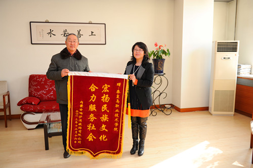 招聘会后响沙湾领导与我院刘艳红副院长进行了座谈,并赠送的锦旗以表示感谢。