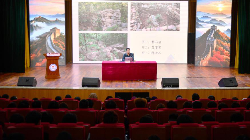 宣讲会上,许国华结合自身多年保护长城的经历,以生动的语言系统阐述了长城的历史文化价值、保护修缮技术及文物发掘背后的故事。他通过展示五件珍贵文物,与现场学生展开互动交流,让师生近距离感受长城承载的民族精神。通过触摸文物和聆听讲解,师生们深刻体会长城这一中华民族精神的象征和全人类共同的文化遗产的魅力。