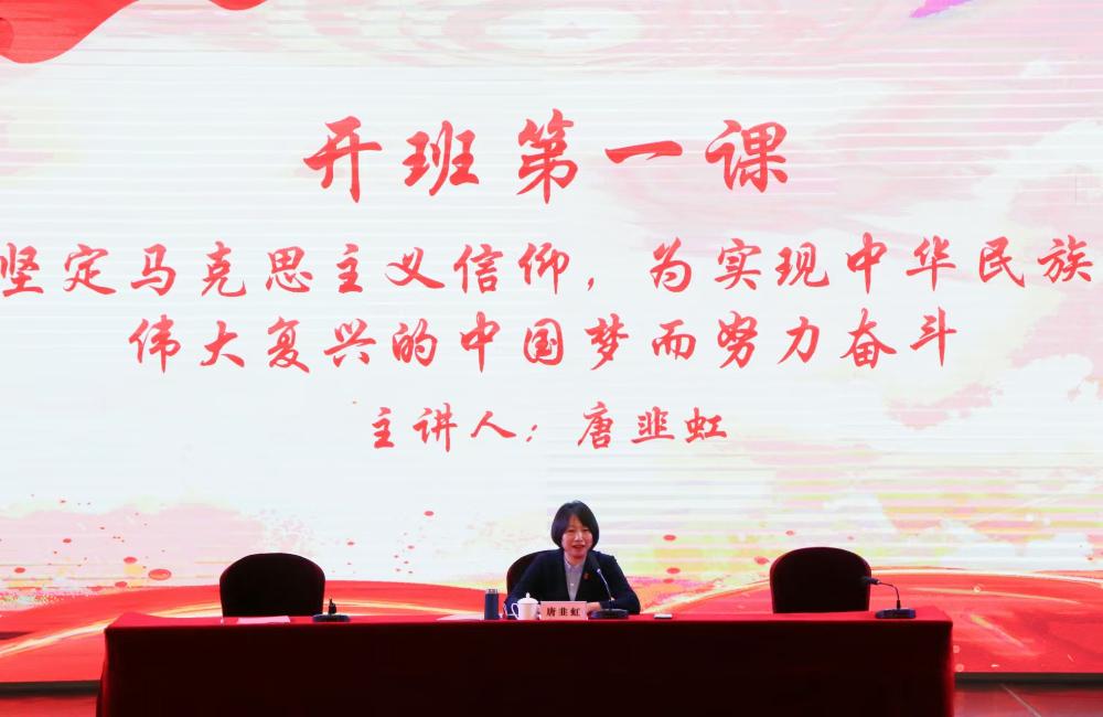 唐韭虹以《坚定马克思主义信仰,为实现中华民族伟大复兴的中国梦而努力奋斗》为题,结合自己对党的创新理论的学习体会,围绕“切实增强用当代中国马克思主义武装头脑的政治自觉”“奋力投身为人民谋幸福、为民族谋复兴的伟大实践”“不断提振建功新时代、奋进新征程的精气神”三个方面与同学们进行交流讲座。她要求同学们要统一思想、提高站位,充分认识培训的重要意义;严格要求、树好形象,以严明纪律和优良作风确保培训取得成效;加强交流、密切合作,用好培训班这个交流平台。