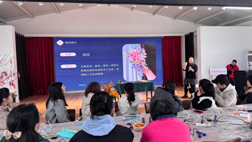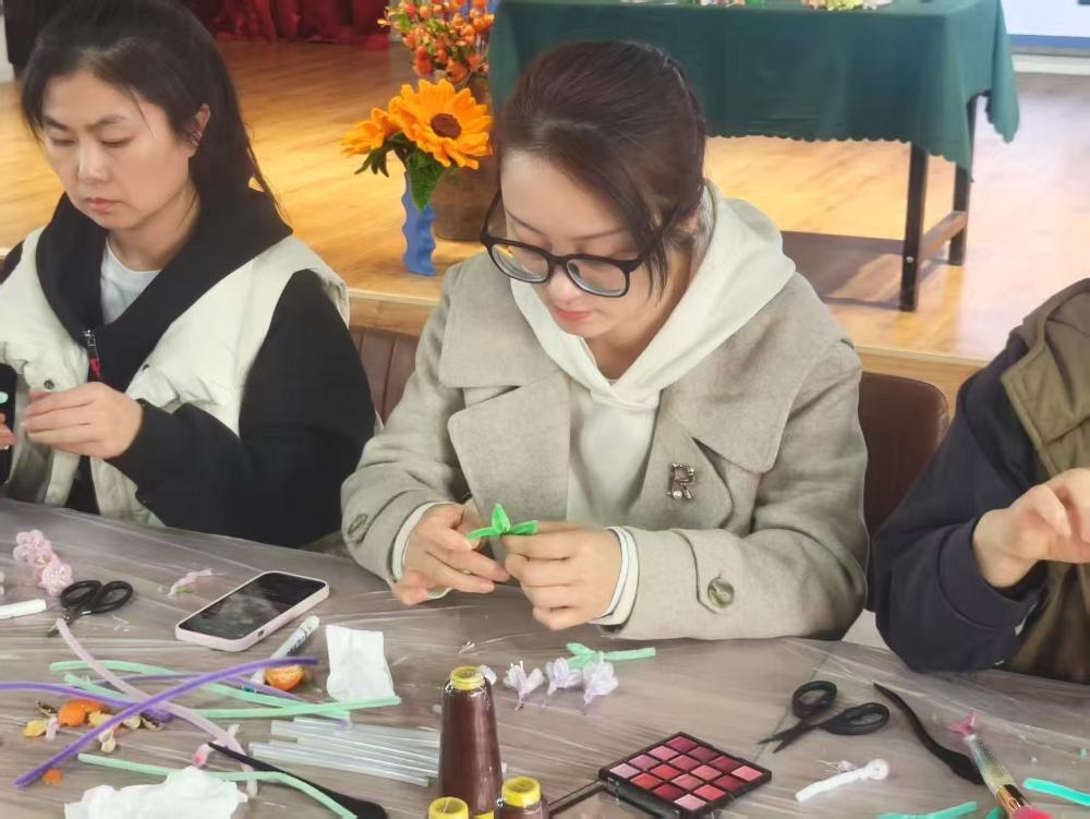 活动现场,女教职工们在专业绒花制作老师的讲解下,了解了绒花的历史渊源、文化内涵以及复杂的制作工艺。绒花作为我国非物质文化遗产,起源于唐朝,历经千年传承,其制作过程需经过近十道工序,每一道都凝聚着匠人的智慧。女教职工们认真学习,相互交流,积极动手实践。经过努力,一朵朵栩栩如生、色彩艳丽的绒花在她们手中绽放。看着自己亲手制作的作品,大家脸上洋溢着自豪和喜悦的笑容。
