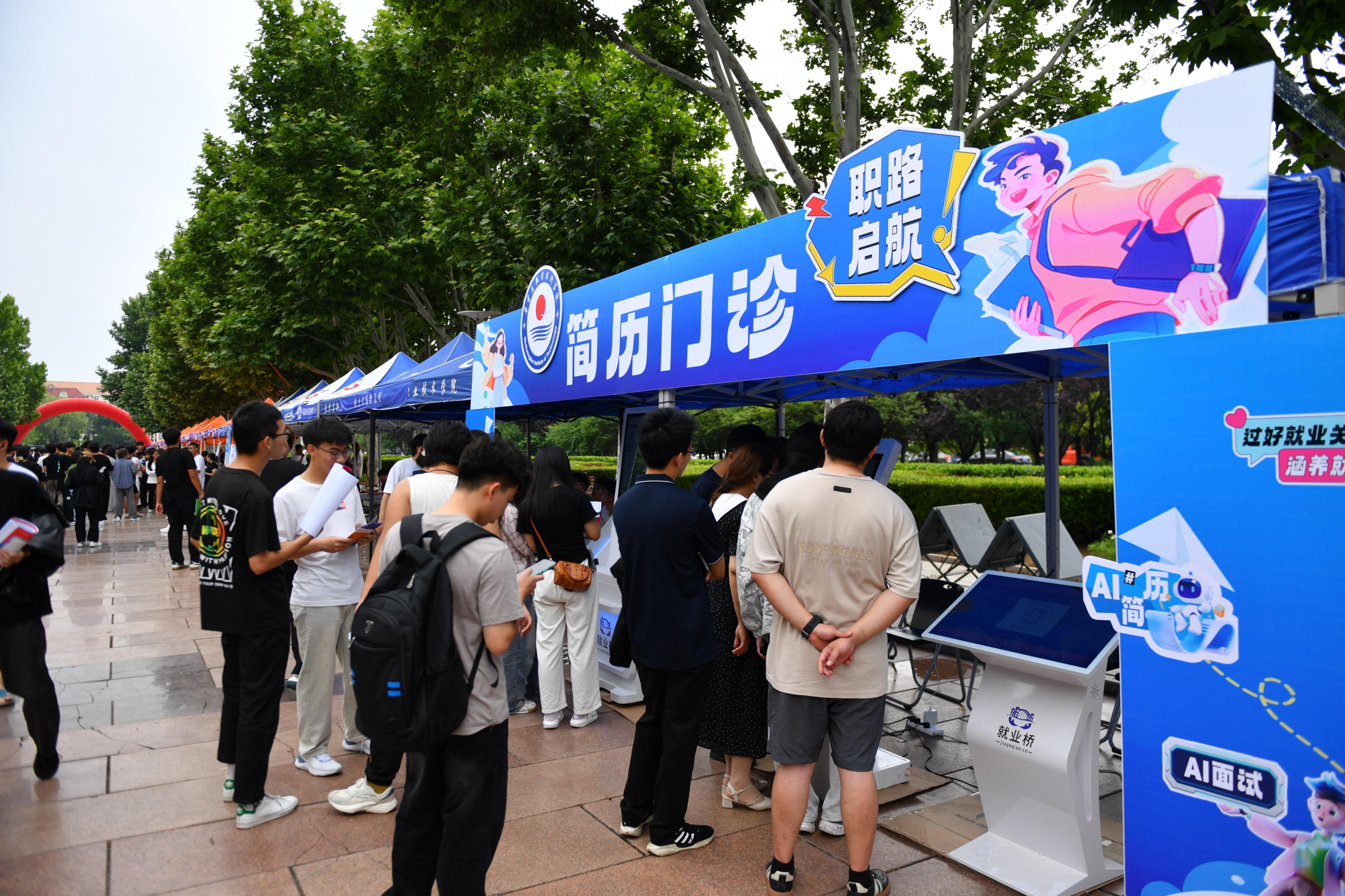 此次招聘会还设立了AI体验区,设置了就业服务一体机、智慧就业一体机、简历打印一体机、AI面试舱等设备,学生们对AI体验区表现出极大的兴趣,现场进行AI简历修改、打印、模拟面试等体验。
