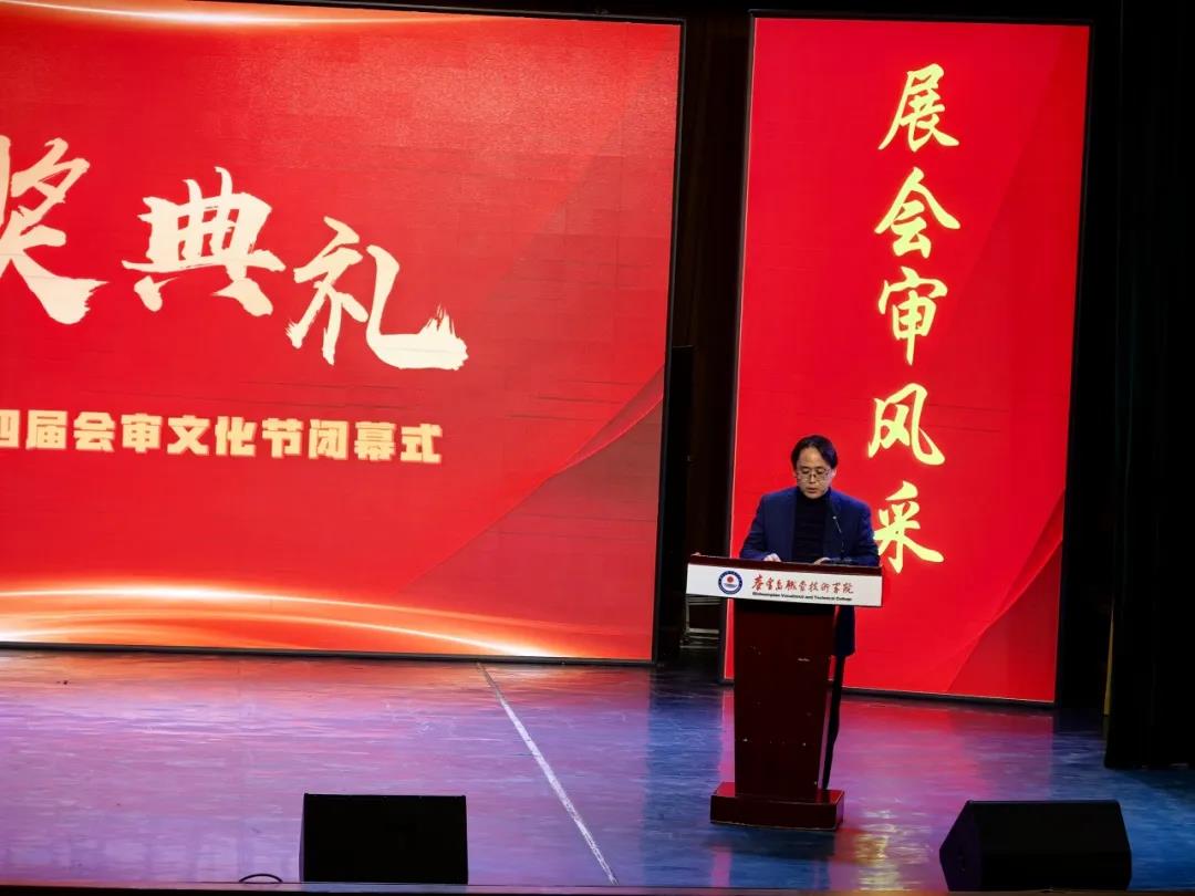 经济系党总支杨小永书记首先上台致辞。杨书记表示,本届会审文化节以“学习 实践 规划 成长”为主题,以大学生就业为导向,聚焦“立德树人、活动育人、文化养人”的活动目标。先后举办了职业规划大赛、智慧税务竞赛、校园歌手大赛、微电影制作大赛、演讲比赛、主持人大赛等13项内容丰富、形式多样的系列活动,直接参与师生近千人次。本次文化节策划周密,组织有序,贴近学生,贴近专业,贴近校园生活,既做到了会审文化元素与我系专业特点的有机融合,营造了浓厚的乐学、乐教氛围,又搭建了我系大学生思想政治教育系统化、素质教育机制化、职业养成教育多元化的有效平台。最后杨书记对与会的嘉宾表示感谢,并祝贺经济系第十四届会审文化节闭幕式暨颁奖晚会圆满成功!