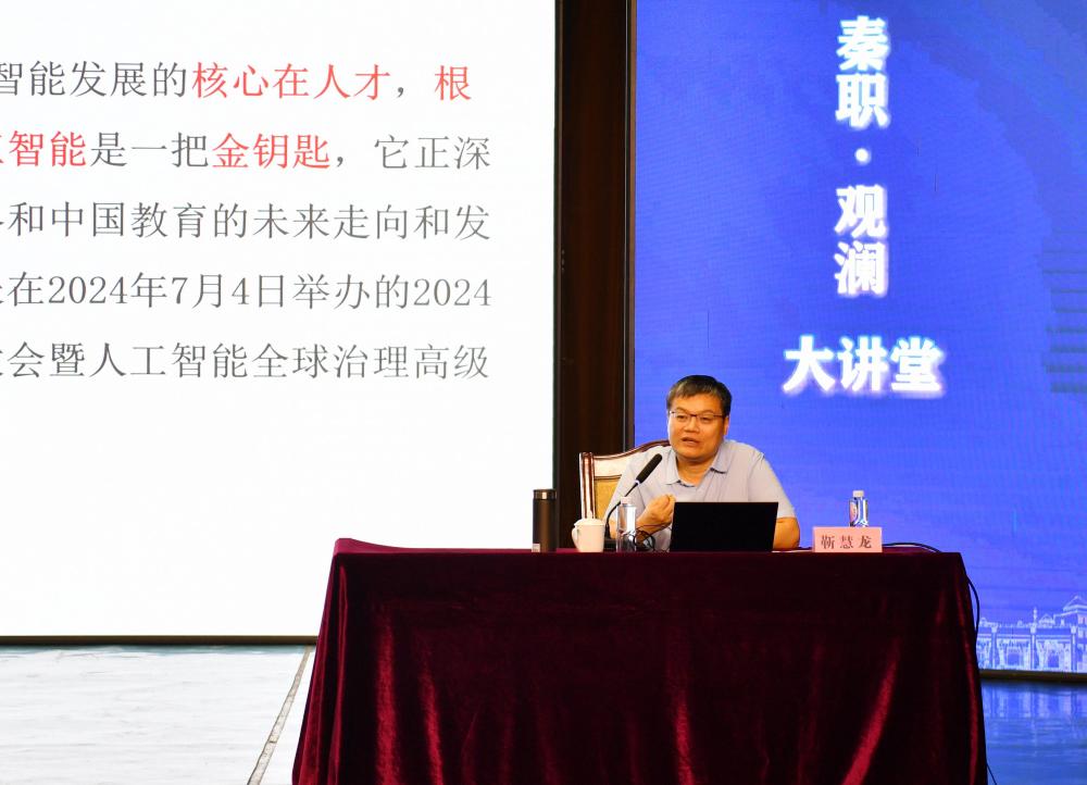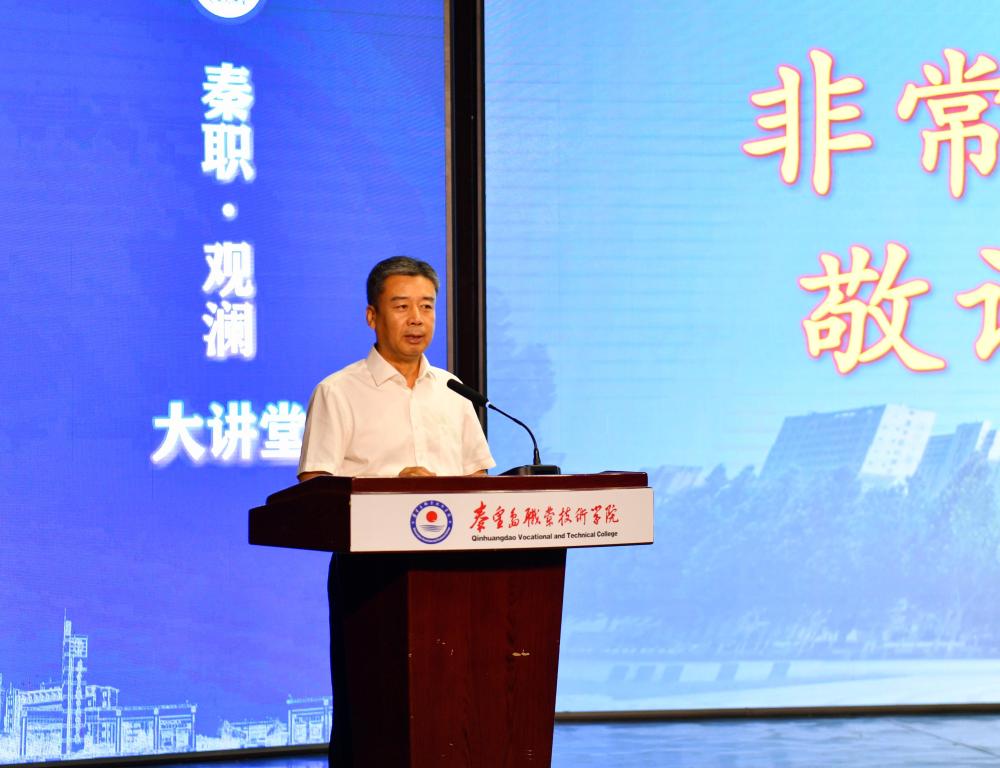 【新闻中心讯】7月16日,学院邀请河北师范大学职业技术学院院长、河北省职业技术教育研究所所长靳慧龙教授做客“秦职·观澜”大讲堂,带来了一场以《教育数字化—职业院校教师数字素养研究》为主题的精彩讲座。讲座由学院党委书记、院长蔡大勇主持,学院副科级及以上干部、各系(部、院)专任教师参会。