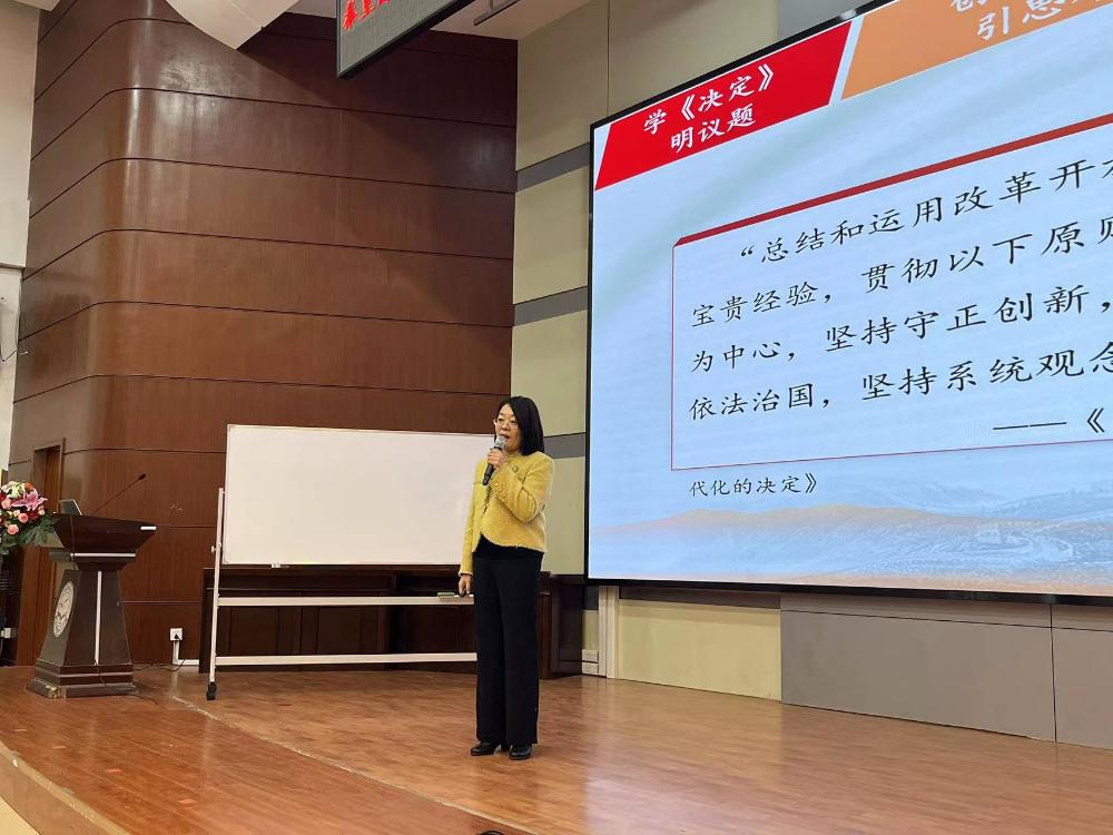 会上,我院思政课教师戴昕哲作为专科学段代表做了题为《正确处理改革与法治的关系》的教学展示,教学过程紧扣专科学段学情特点,围绕“是什么?怎么办?”的问题主线,通过学《决定》明议题、创设问题引思考、探究问题强认知、问题拓展促提升四个层层递进的教学环节,使主题教学逻辑清晰、目标明确,突出了专科学段的授课特点,展现了我院思政课教师的风采。