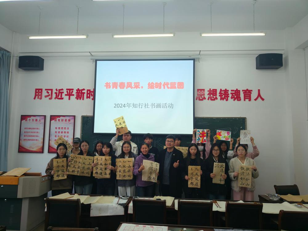 发布时间:2024-10-29书法是中华优秀传统文化的艺术精髓和瑰宝,其艺术性鲜明、思想性广泛,蕴涵着极为丰厚的思想政治教育资源。2024年10月27日,马克思主义学院开展“翰墨思政”实践教学活动。活动由《形势与政策》教研室主任李立老师主持、王石磊副教授主讲,知行社全体学生参加。