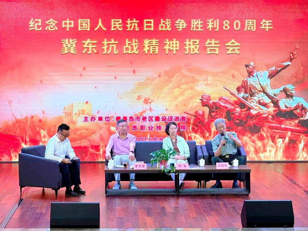 2025年8月29日,在中国人民抗日战争暨世界反法西斯战争胜利80周年之际,学院团委联合市老区建设促进会在报告厅成功举办“冀东抗战精神报告会”。开国上将邓华之女邓英、开国少将罗文之子罗亚军、冀东抗日英雄周子丰之子周庆信三位红色后代,以父辈的烽火记忆为教材,服务《习近平新时代中国特色社会主义思想概论》课程实践教学,为500余名青年学子讲授了一堂跨越时空的沉浸式思政课。这场别开生面的报告会,标志着学院在“大思政课”实践教学改革中迈出关键一步。