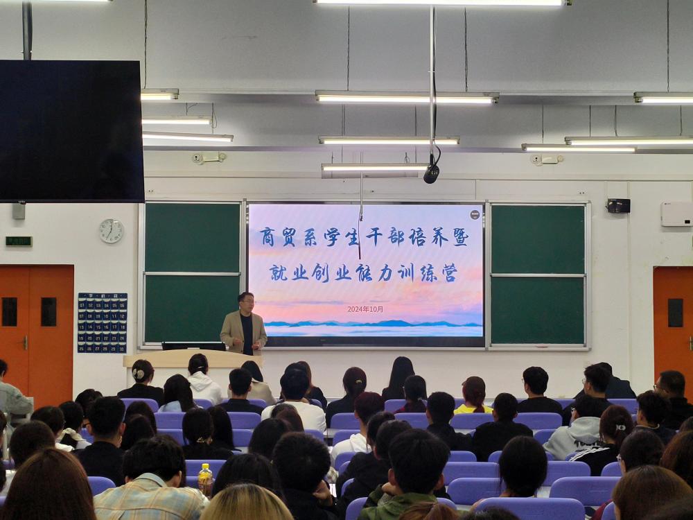 为进一步加强学生干部队伍建设,提升学生的就业创业能力,商贸系于近日成功举办了“学生干部培养与就业创业能力提升训练营”开营仪式。商贸系党总支副书记尹秉权、辅导员王柊玉老师,全体学生干部参加了此次开营仪式。