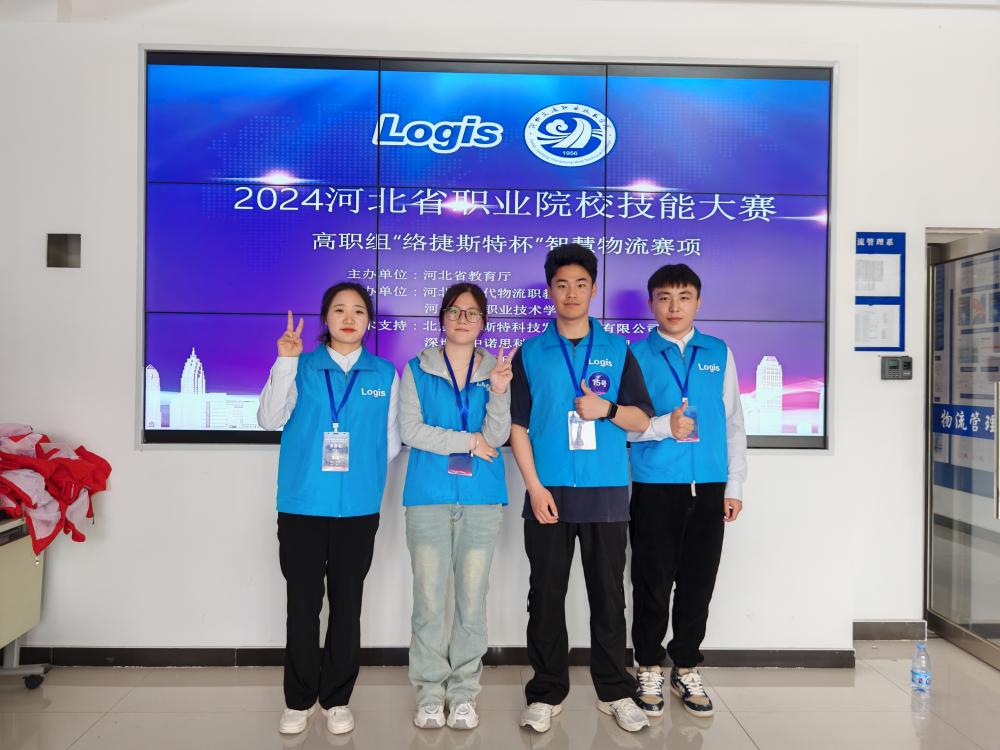 2024年4月11日至13日,商贸系现代物流管理专业22级学生李元、王贺飞、王源源及23级学生朱钰翎在曹萍、孙杨两位指导教师的带领下,到河北交通职业技术学院参加河北省职业院校技能大赛(高职组)“络捷斯特杯”智慧物流赛项的比赛。本次比赛由1+X 物流职业素养测试、智慧物流系统规划仿真与方案设计、智慧物流系统方案实施与方案汇报答辩三大模块组成。本次大赛参赛队员齐心协力、顽强拼搏,指导老师悉心指导、兢兢业业,最终在学校领导的大力支持下,在团队的通力协作下,团队获得了学生赛三等奖,曹萍老师获得了教师赛三等奖。