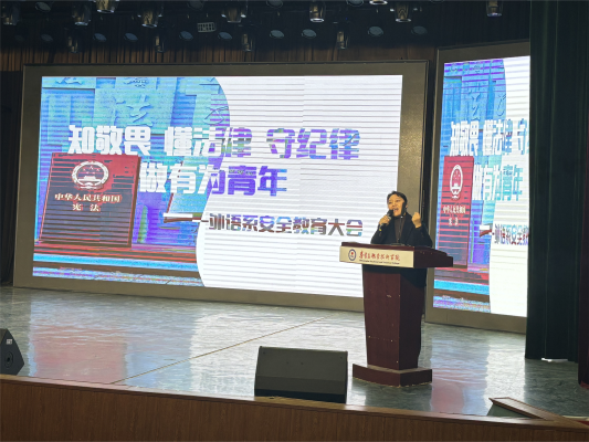 发布时间:2024-10-23赵丽丽以“知敬畏、懂法律、守纪律,做有为青年”为主题,结合实际案例进行了日常行为规范、安全与法纪、成长成才教育。她强调,作为新时代大学生,要牢固树立纪律规矩意识,规范言行,自觉遵守校规校纪;要不断增强安全意识,时刻保持警惕,保护好自身的生命财产安全;要不断增强自我管理的意识,树立正确的价值观和人生观,努力学习,增长才干,努力成长为合格的社会主义建设者和接班人。最后,她对同学们提出了三点希望:一是希望同学们知礼义,塑行为,做文明青年;二是希望同学们知敬畏,懂法律,做守法青年;三是希望同学们有信仰,长才干,做有为青年。