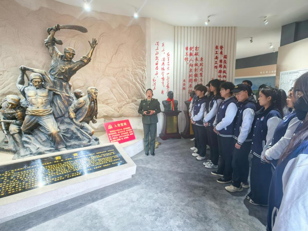 仪式结束后,师生共同参观烈士纪念馆。在讲解员的带领下,大家通过珍贵的历史照片、文物和影像资料,深入了解花厂峪抗战时期的重要事件及英雄烈士、模范人物的光辉事迹。一幅幅泛黄的家书、一件件斑驳的遗物,让学生干部深刻感受到革命年代共产党人坚如磐石的理想信念。
