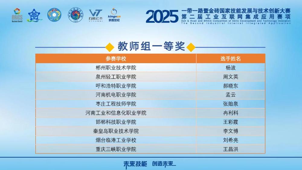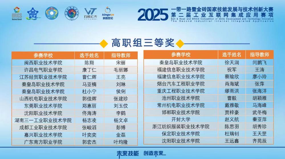我院师生在2025一带一路暨金砖国家技能发展与技术创新大赛之第二届工业互联网集成应用赛项决赛中喜获佳绩